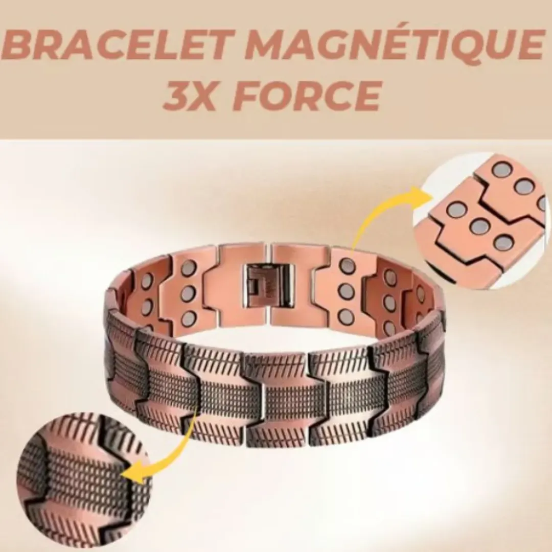 Grâce à la puissance naturelle du cuivre et des aimants. Ce bracelet élégant agit comme une “batterie naturelle” pour votre corps, favorisant un meilleur sommeil, une circulation fluide et un soulagement des douleurs.